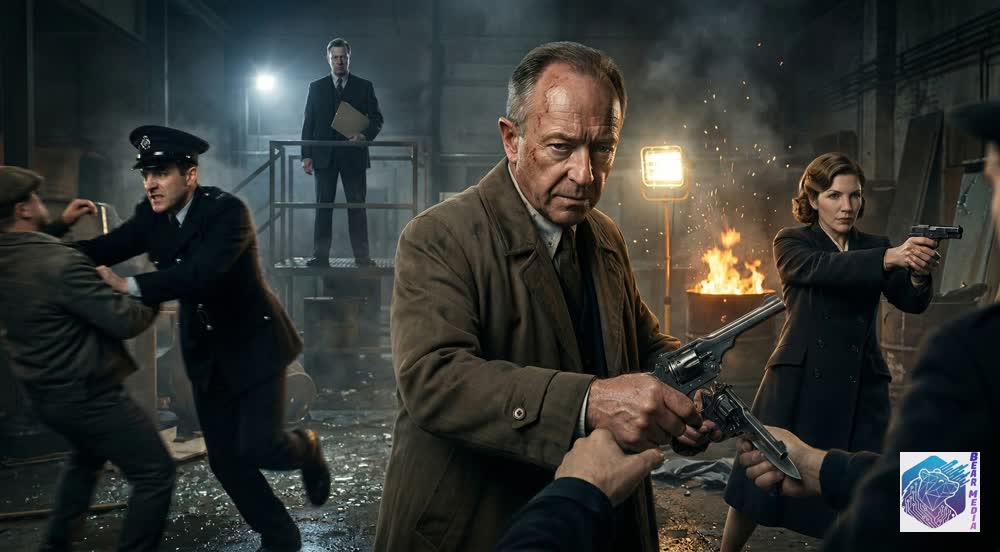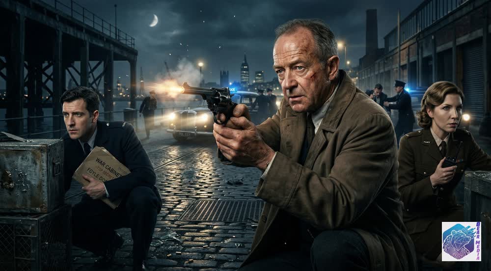 The pier at midnight. A vintage police rover’s headlights violently cut through the mist, illuminating a frantic struggle by the water’s edge. Constables drag a desperate suspect into the cold light, but this arrest is merely a pulled thread in a massive, tangled web. The dossier has been opened. The blood of the past has bled into the present, forcing Foyle, Sam, and Milner into a dangerous reunion to confront a conspiracy that reaches the highest, most impenetrable echelons of the British government.
