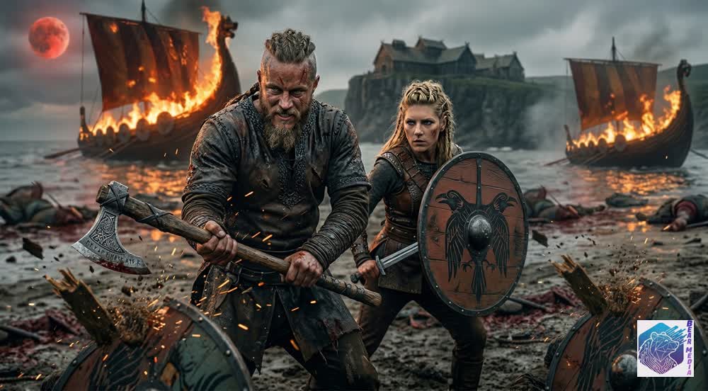 The sea churns with a dark, unforgiving fury, reflecting the crimson glow of a sky torn apart by war. It drowns out the rhythmic crash of waves against the muddy shoreline, replacing it with the deafening roar of clashing steel and splintering wood. A homeland has been invaded, transformed into a sprawling theater of death beneath the terrifying gaze of a blood-red moon. Under a canopy of thick, suffocating smoke and the colossal, blazing frames of sinking longships, a forgotten era violently resurrects… The warriors who once carved their names into the very bones of the earth are forced to return from the mists of myth, gripping their heavy weapons not to raid, but to exact a merciless salvation.