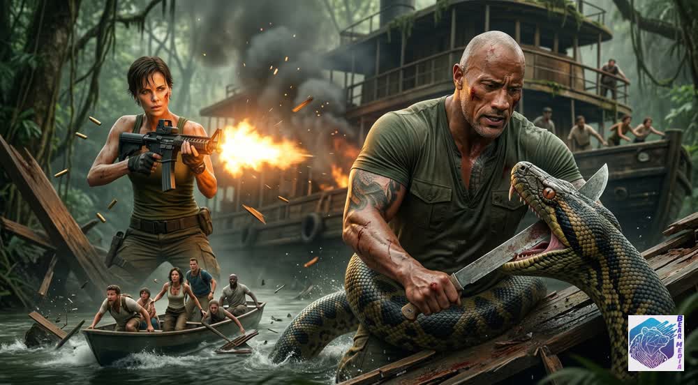 Looming above the panicked expedition, it is the terrifying embodiment of an apex predator left undisturbed for centuries. This is no longer just a reptile of the Amazon; it is a colossal, muscular nightmare driven by a singular, cold-blooded instinct to consume. It parts the dark waters and shatters the silence, an unstoppable, aquatic leviathan defending its ancient territory. It does not strike out of fear; it coils to conquer, turning heavily armed humans and fragile wooden canoes into splintered prey beneath a storm of crushing muscle and razor-sharp fangs.