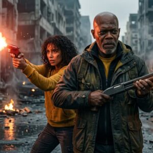 Caught between the monster and the man is the woman who remembers his soul. Her expression is a mix of terror and tragic recognition, a solitary light in an overwhelmingly grim landscape. She carries the memory of who he was, her love tested by a reality that is increasingly violent and unrecognizable. She watches the city burn, fighting not just for her own survival, but to reach the lingering shred of humanity still trapped beneath his artificial faces.