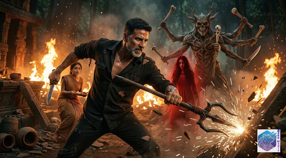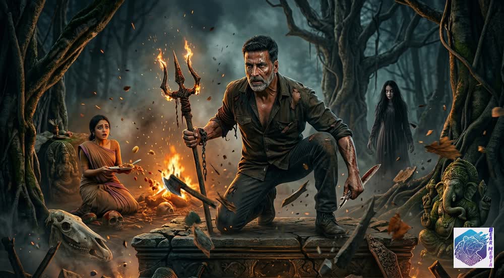 The midnight hour strikes, and the forest awakens in a chorus of agony. The fire blazes violently as the spectral woman in white materializes from the fog, her hollow eyes locking onto the living. The monstrous entity of roots and wrath steps forward, the very earth trembling beneath it. Dev must stand. The heavy chains bind his wrist to the sacred trident, dragging across the stone as he forces himself up from his knees. It is the ultimate collision of mortal will against supernatural fury… a desperate, bloody struggle at the altar to break the cycle of the Bhoot Bangla before they become another skull in the dirt.