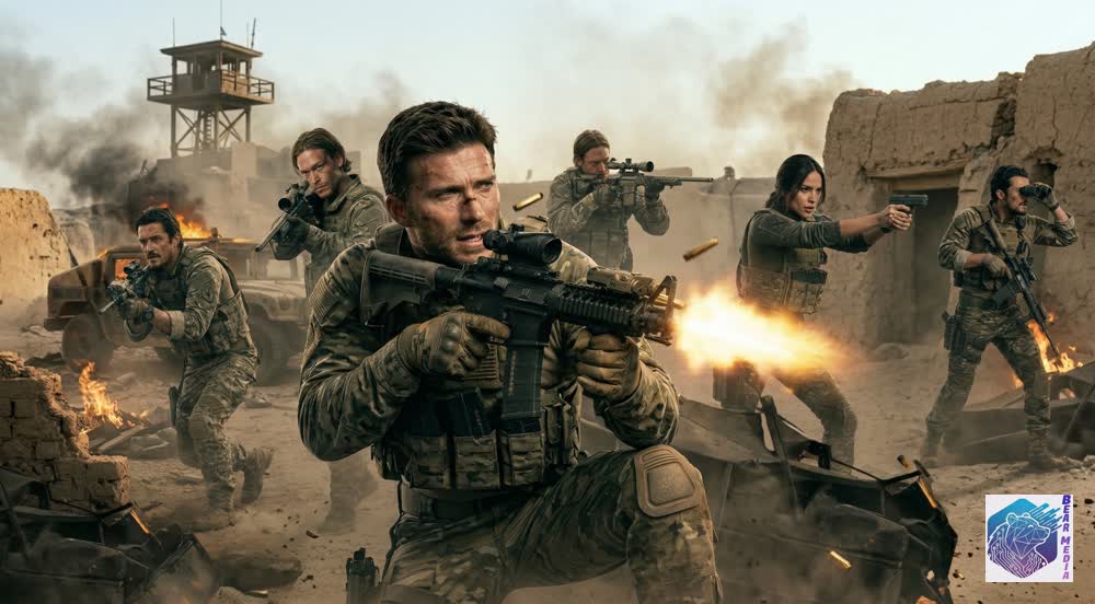 Then, the sky tears open. The dusk is violently erased by the blinding orange bloom of explosions ripping through the defensive barriers and armored Humvees. Ash rains down like black snow. They fight not for distant policies, but for the person bleeding beside them in the dirt. Gunfire creates a frantic rhythm in the dark, a desperate, echoing symphony of survival as the compound walls crumble under the weight of the assault.