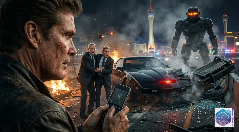 The grid collapses in a symphony of shattered glass and blinding lasers. Sirens wail against the deafening roar of mechanical pursuit. As autonomous patrol cruisers and armored drones corner the innocent in a blinding crossfire on the midnight strip, the guttural roar of a V8 engine shatters the technological silence. Black molecular armor absorbs the laser fire. The tires grip the burning pavement. Man and machine, moving as one synchronized, unbreakable soul, dive headfirst into the impossible odds of the neon abyss.