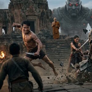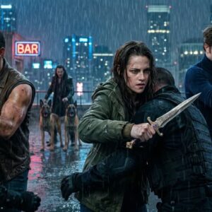 Clad in tactical gear and standing unflinching amidst the chaotic assault, his gaze cuts through the smoke like a laser locking onto its target. He is the fierce, kinetic counterpart to Barney’s stoic wrath, a warrior forged in the violent, unforgiving underbelly of a world tearing itself apart. He does not cower beneath the deafening roar of the overhead helicopter; he embraces the chaos. He moves through the blazing warzone with a lethal, untamed grace, proving he is just as dangerous as the monsters they are hunting.