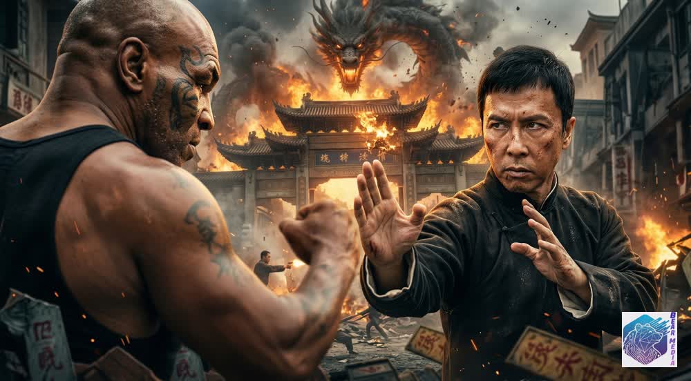 Clad in a dark tank top and standing unflinching amidst the chaotic brawl, his tattooed gaze cuts through the smoke like an apex predator locking onto its prey. He is the fierce, kinetic counterpart to the grandmaster’s stoic defense, a brawler forged in the violent, unforgiving arenas of a world built on raw, devastating power. He does not cower beneath the fiery myths of the East; he challenges them. He moves through the blazing warzone with a lethal, untamed ferocity, proving his heavy fists are just as deadly as the ancient techniques he seeks to crush.