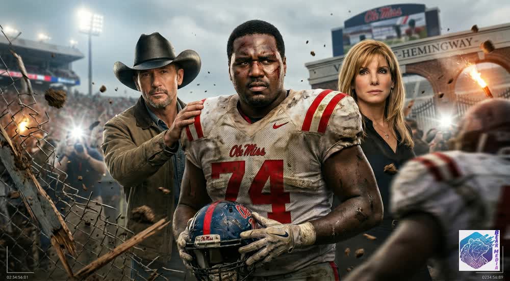 He stands battered, the pristine Ole Miss jersey now stained with the dirt of reality and the sweat of expectations. The scars on his face map a journey far more treacherous than any defensive line he ever faced. He is no longer the quiet boy needing a home; he is a grown titan holding the battered helmet of his own legacy, staring into a future that demands more than just his physical strength… it demands his soul. He must figure out who he is when the game finally stops.