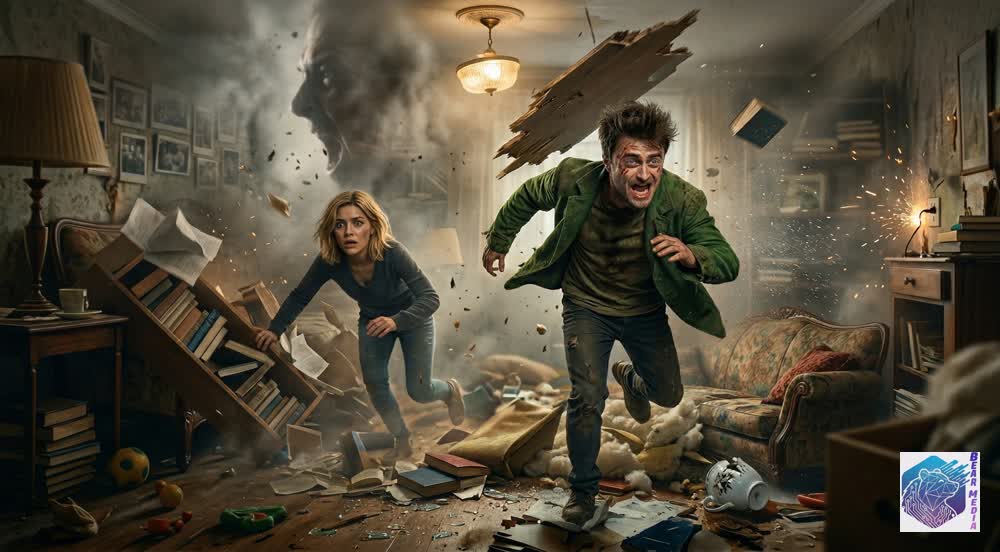 The dust settles in the ruined apartment. The giant, screaming shadow fades into the morning light. There is no neat resolution, no magical cleanup. But Lizzie stands up. She picks up a single, muddy toy from the wreckage. She doesn’t put it in the trash; she places it gently on the mantelpiece. Beside her, an empty space feels warmer. A faint, mischievous giggle echoes in the hallway. She smiles, a real, messy smile, and steps out into the rain without an umbrella.