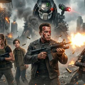 Clutching a tactical weapon with white-knuckled determination, her gaze cuts through the flying cinders like a woman who has watched her life’s work turn into a waking nightmare. She is the desperate, fiercely protective counterpart to his primal edge, a former executive hardened by the brutal reality of the jungle. She does not cower behind reinforced glass or control room screens anymore; she embraces the dirt and the danger. She moves through the blazing rain of lava with a fierce, awakened resilience, proving she will bleed to fix the world she helped break.